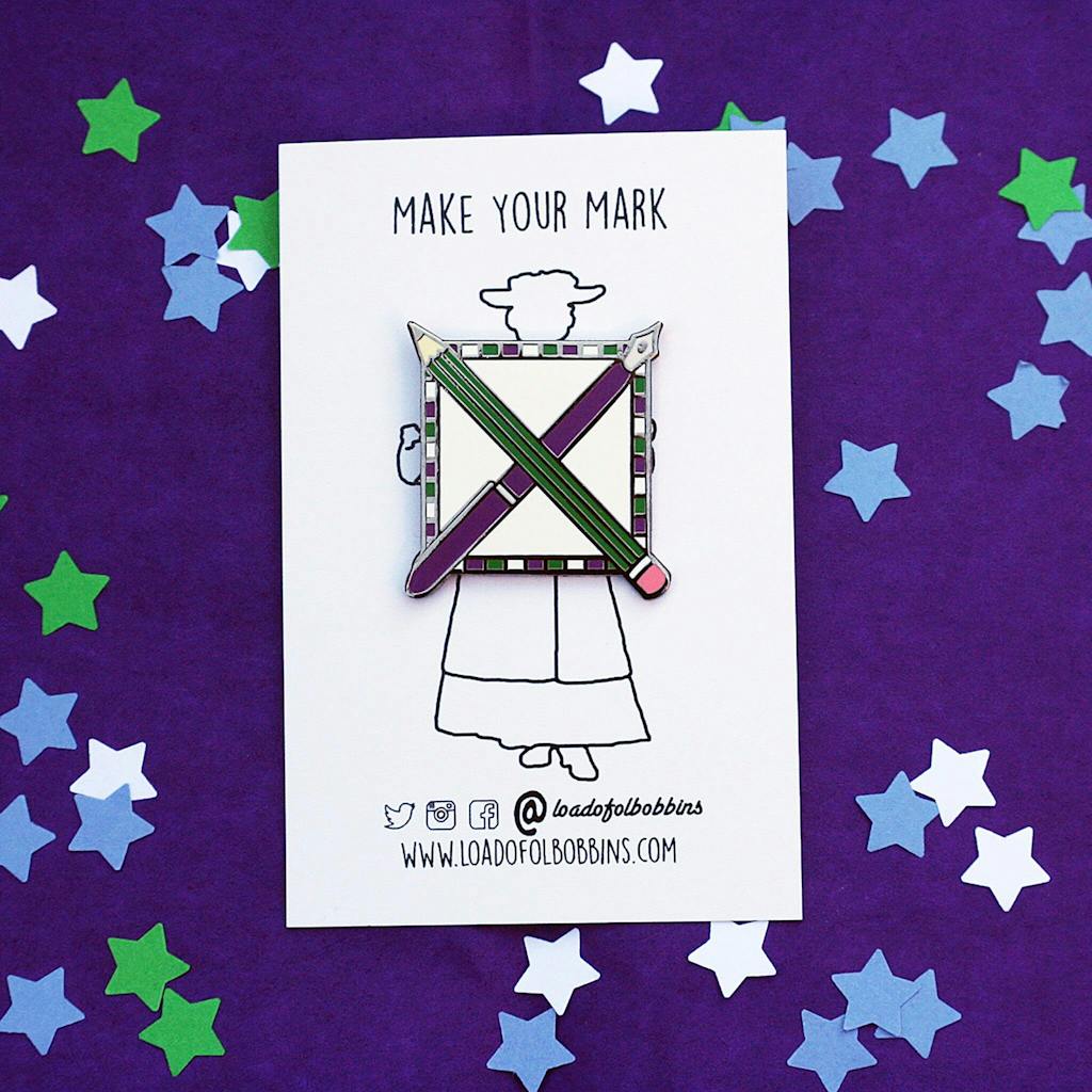 Inspired by the legacy of the Suffragettes I designed this pin celebrating the power of voting. Throughout history we’ve seen how important it is to speak up to effect change. So when you may be feeling frustrated and overwhelmed with the state of things, I hope this pin can help pick you back up and encourage you to keep making your mark. Just a small X in a box can be a powerful tool!